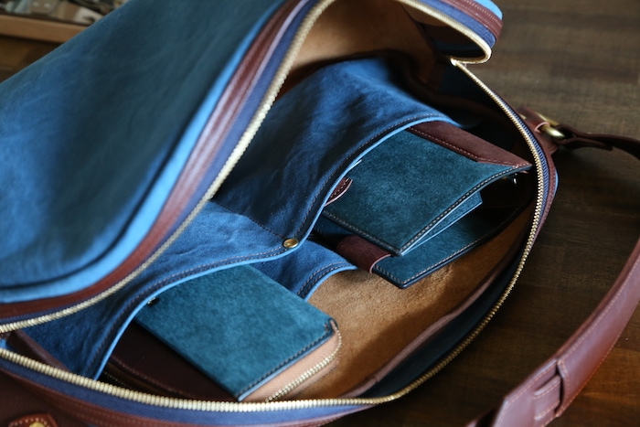 布の部分があり、革のみの鞄に比べて軽い!