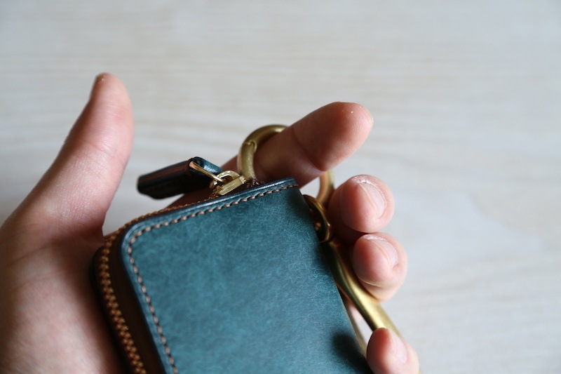 組み合わせる楽しさがある丸型カラビナが特徴的なお財布です。